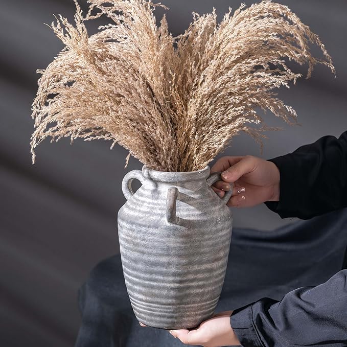 - Functional & Stable Design Designed with a wide 3.75-inch mouth for effortless floral arrangements, a flat non-slip base for stability, and three handles for easy placement, this large vase fits mantels, bookshelves, living rooms, or entryways seamlessly.