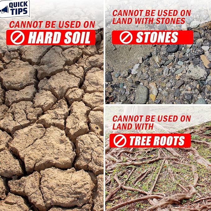 - Versatile Applications: This cultivator tiller is perfect for digging, crushing soil and aerating soil. It’s also great for harvesting root vegetables like potatoes and carrots. Note that when using it on compacted soil, the recommended fork depth is 5.9 inch, and use caution if there are thick branches or rocks on the ground. If you have any problems while using it, please don't hesitate to reach out to us. We're here to assist you anytimeand ensure you have the best experience possible.