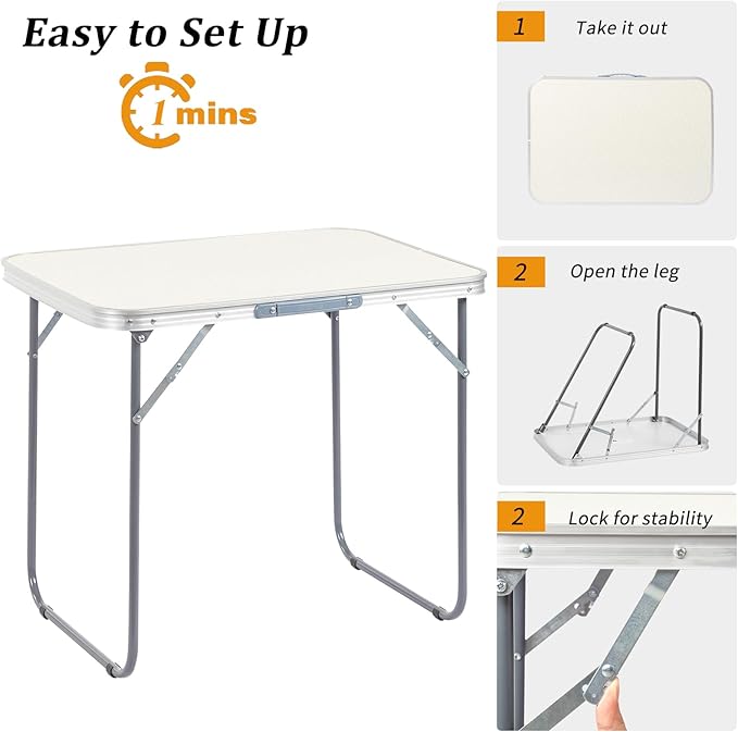 - 【CONVENIENT DESIGN】The rv outdoor table can be easily opened in seconds with just a few simple steps. Quickly fold with the side locks and carry handle. The desktop features fiberboard that is easy to clean stains only by swiping. The 3ft folding table provide convenience in a variety of places for you