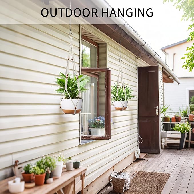 - Handmade for Durability: Crafted from natural cotton rope, this hanging planter is meticulously handwoven for long-lasting strength and support; Fits 6 to 15 inches pots and supports up to 22 lbs, keeping your plants safely suspended without tilting