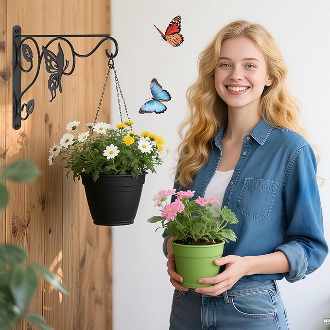- 【Complete 2-Pack Set with Guarantee】The package includes 2 pcs 12"×9" hanging plant brackets with 4 screws and rubber plugs. Compared to flimsy alternatives, our hooks offer industrial strength + decorative appeal. Love them or contact us for a hassle-free solution!
