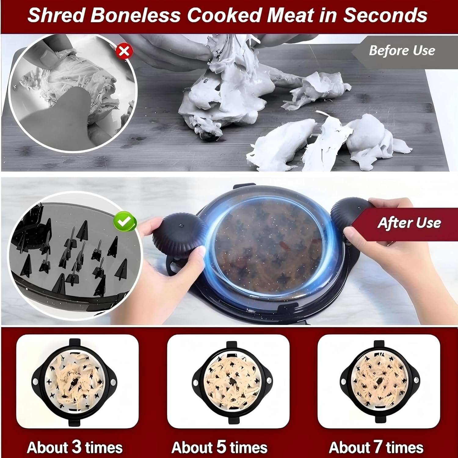 - Large-Capacity Removable Plate: The chicken shredder includes a removable plate with lifting holes–unload shredded meat instantly and keep shredding batches nonstop