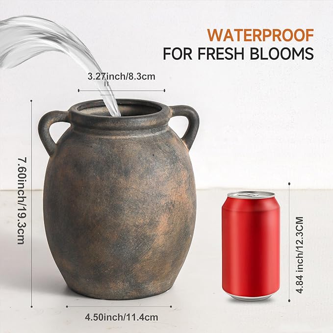 - 【Handcrafted Ceramic Artistry】Made of high-quality, 100% hand-painted ceramic with high-temperature firing, this vase combines durability with unique artistry. Its waterproof interior allows for fresh flowers, while the rustic terracotta finish adds timeless charm.