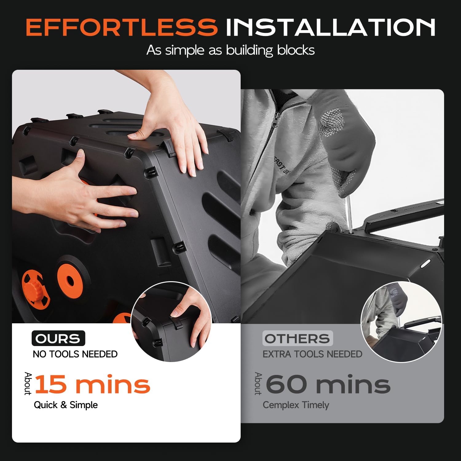 - 【Super-Fast Snap Assembly】 Say goodbye to complicated setups! TOP XIAN's 2025 single-chamber compost bin assembles in minutes. Effortlessly snap components together like sturdy blocks, no frustrating screws or wrenches. Perfect for beginners or anyone who values instant setup
