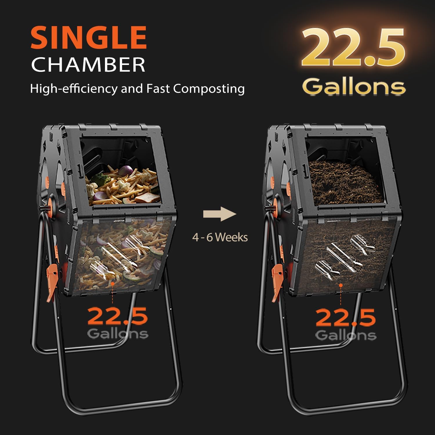 - 【Space-Smart Compost Tumbler】 The ideal 22.5-gallon size efficiently handles household kitchen and garden waste, making it the perfect space-saving solution for smaller yards or patios. Get started composting without sacrificing valuable outdoor space