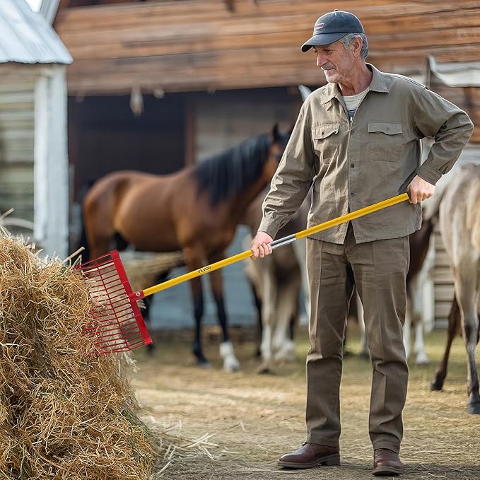 - Versatile Use: Ideal for handling large piles of leaves and pine needles, this muck fork tool is also suitable for moving mulch, wood chips, manure, hay, and more. However, it is not suitable for digging. From leaves to straw, it can handle a wide range of tasks effortlessly.