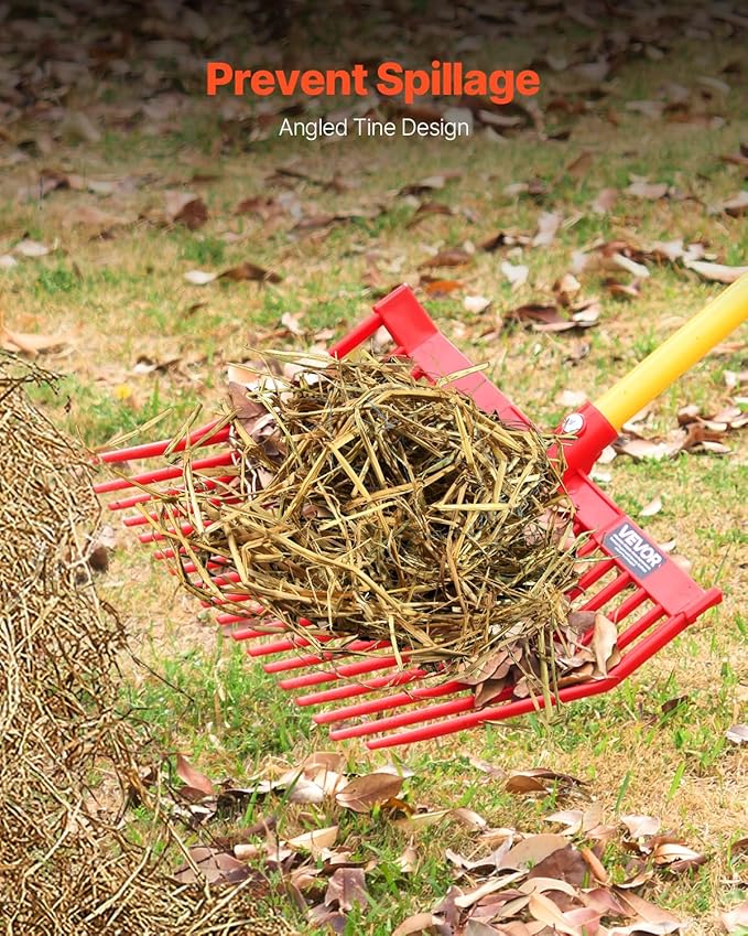 - Mess Reduction: The hay fork replacement head features a side-angled tooth design, with a slanted structure at both ends to effectively reduce material spillage. This design minimizes the mess during use, helping create a cleaner environment for plant growth and pets.