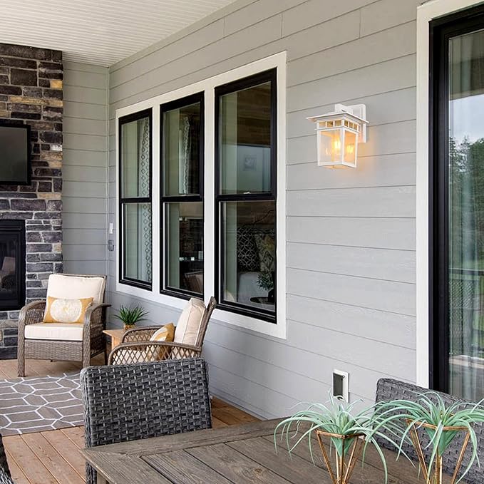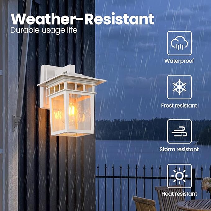 - [Weather Resistant]: The white exterior wall lights are weather resistant and suitable for wet locations. This white outside lights for house feature aluminum metal construction and seeded glass panels, it won't get rusty or corrosion easily after years of using