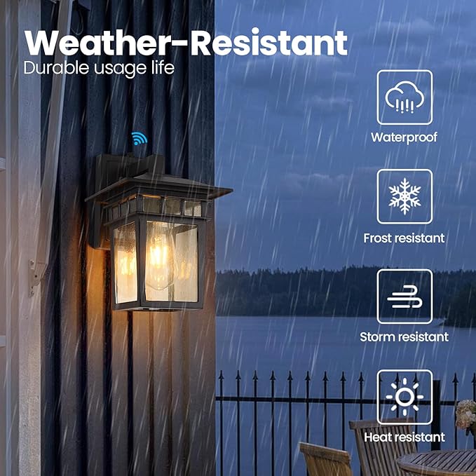 - [Weather Resistant]: The exterior porch lights are weather resistant and suitable for wet locations. This outdoor wall lanterns feature aluminum metal construction and seeded glass panels, it won't get rusty or corrosion easily after years of using