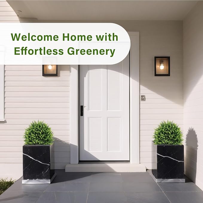 - 【Versatile Use – Great for Any Outdoor Space】This set of 2 fake outdoor plants adds structured greenery to porches, garden paths, balcony corners, and more. Great for year-round landscaping, event setups, or minimalist outdoor decor