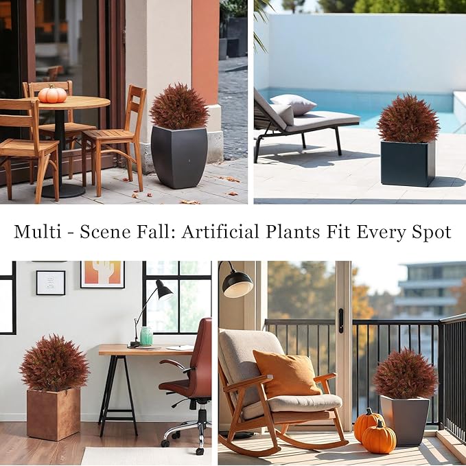 - 【Versatile Seasonal Decor – Perfect for Holidays & Events】Ideal for Thanksgiving, Halloween, harvest festivals, or cozy fall gatherings, this set of 2 fake outdoor plants adds festive charm to homes, storefronts, and outdoor events. A thoughtful gift for anyone who loves the beauty of fall