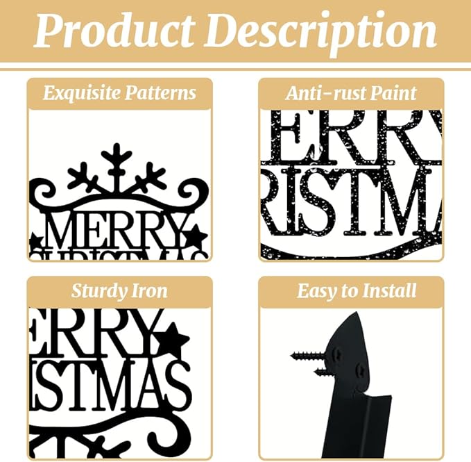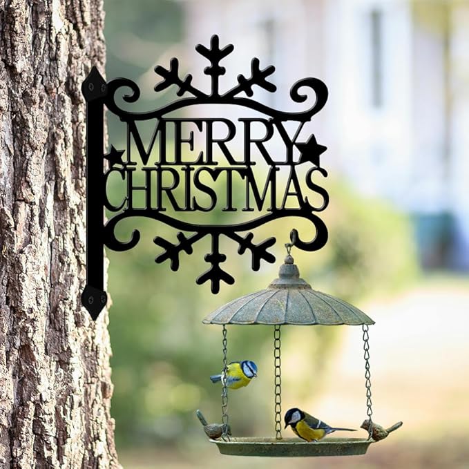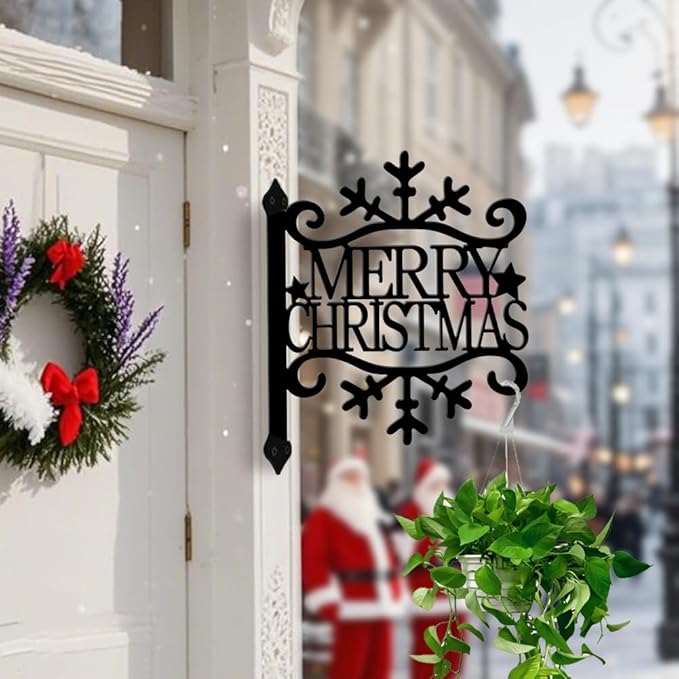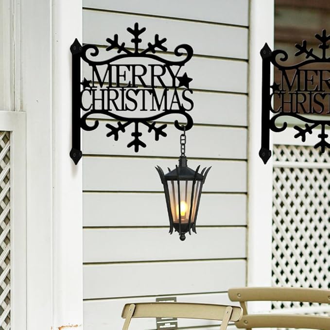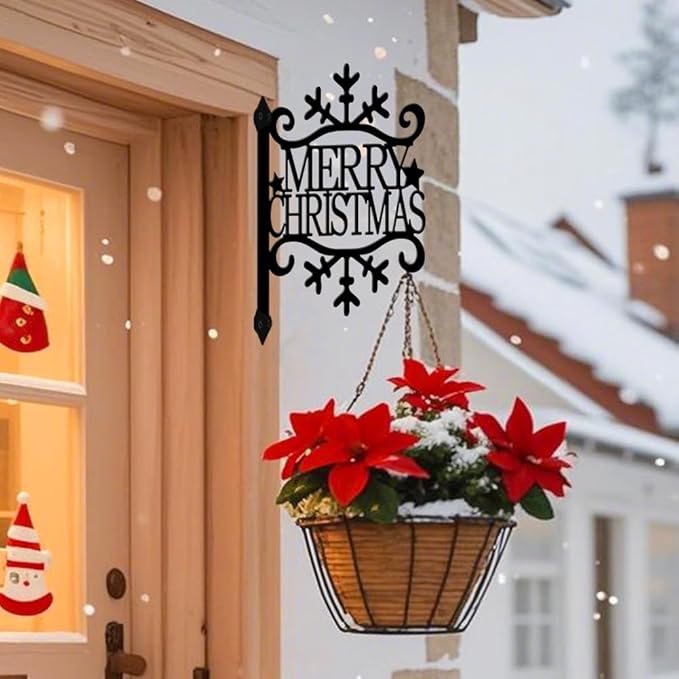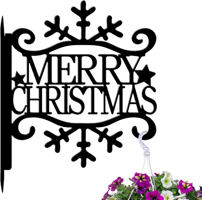 peacoblue Iron Plant Hangers Hooks for Outdoor Indoor Hanging Plants Flower Fern Pots Lantern Bird Feeder,11.5"x14.3" Weather Resistant Metal Wall Holder for Porch Garden Farmhouse(Merry Christmas)