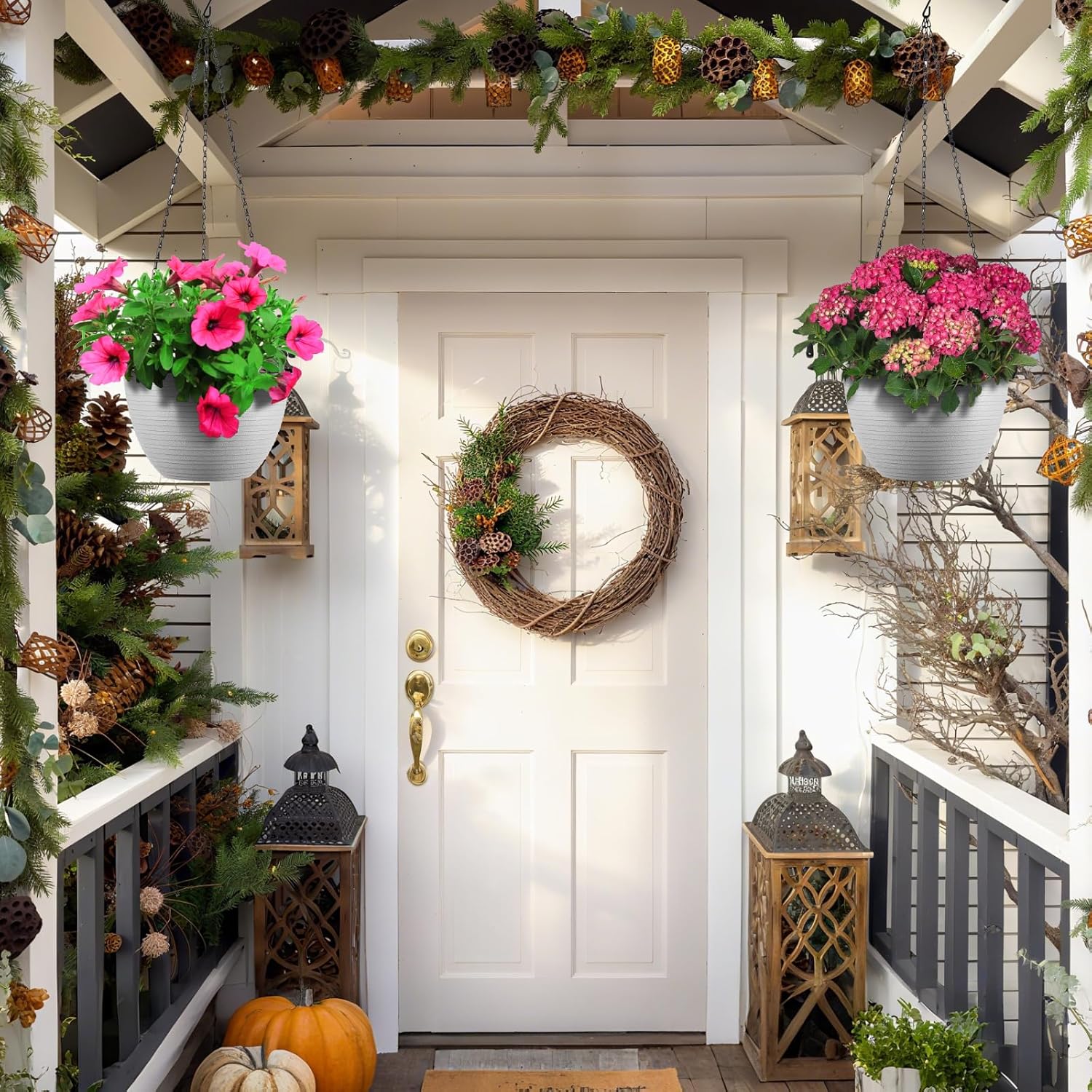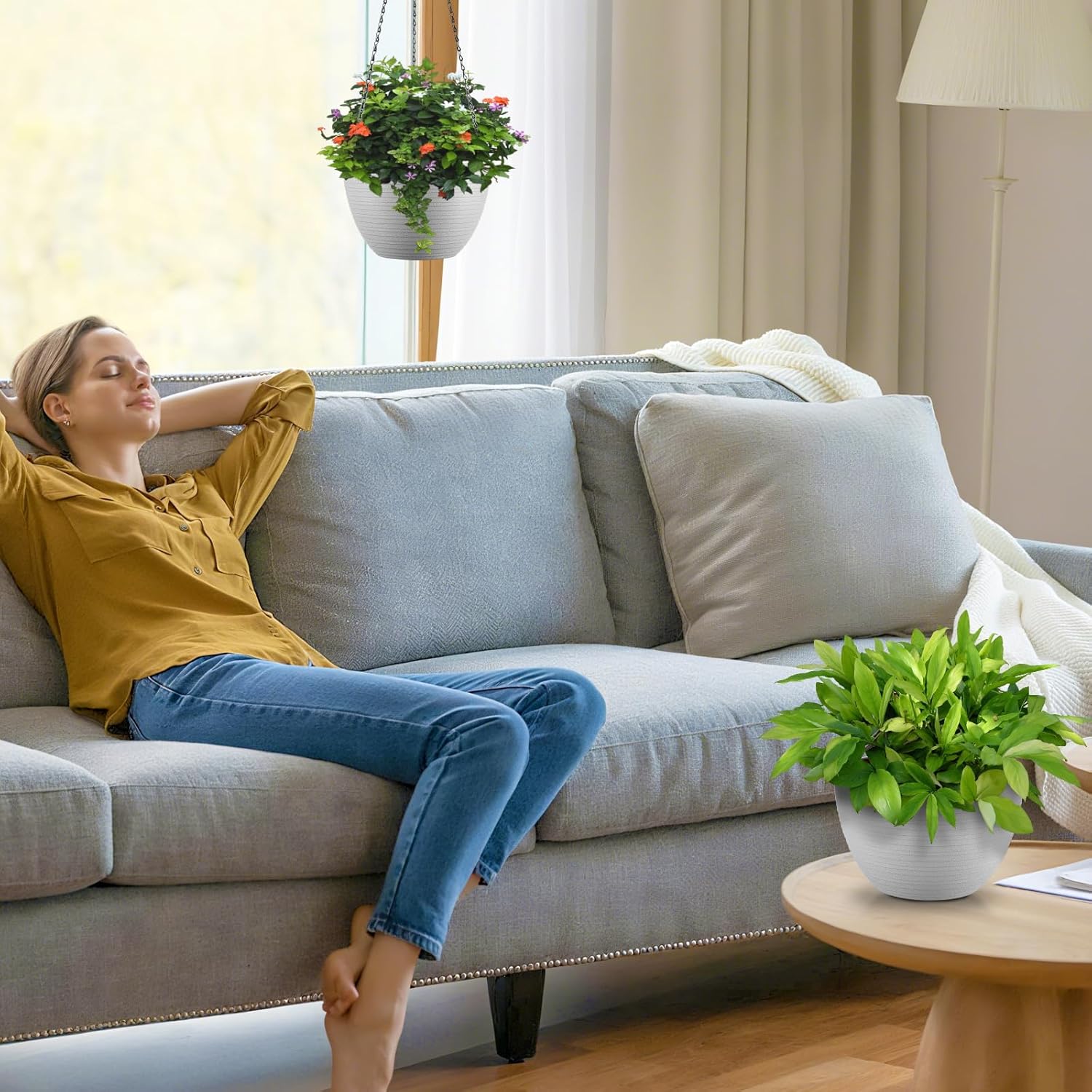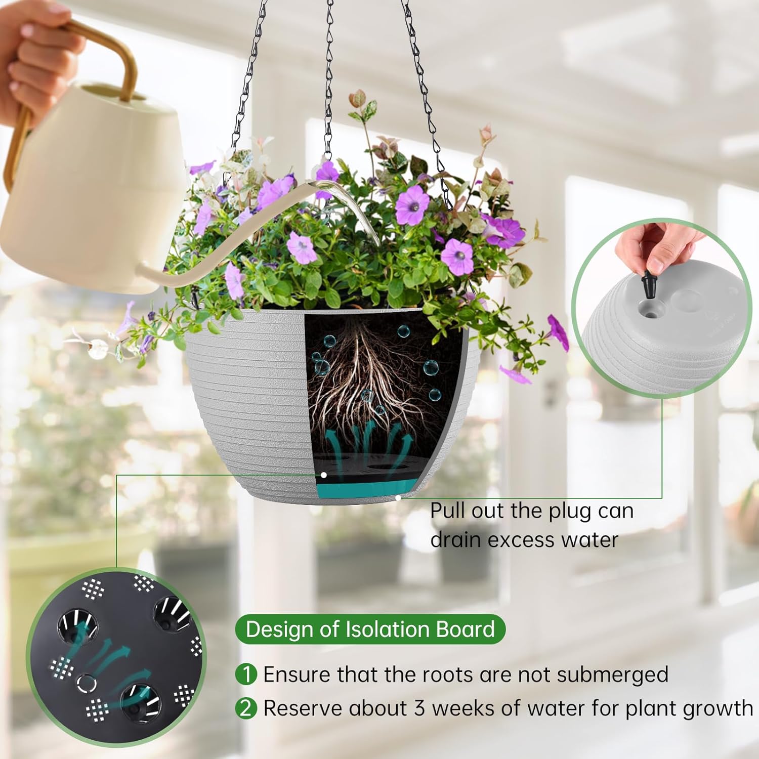 Hanging Planters for Indoor Outdoor Plants, Set of 2 Self Watering Hanging Pots with Drainage Hole & Plug and 20" Chain & Hooks