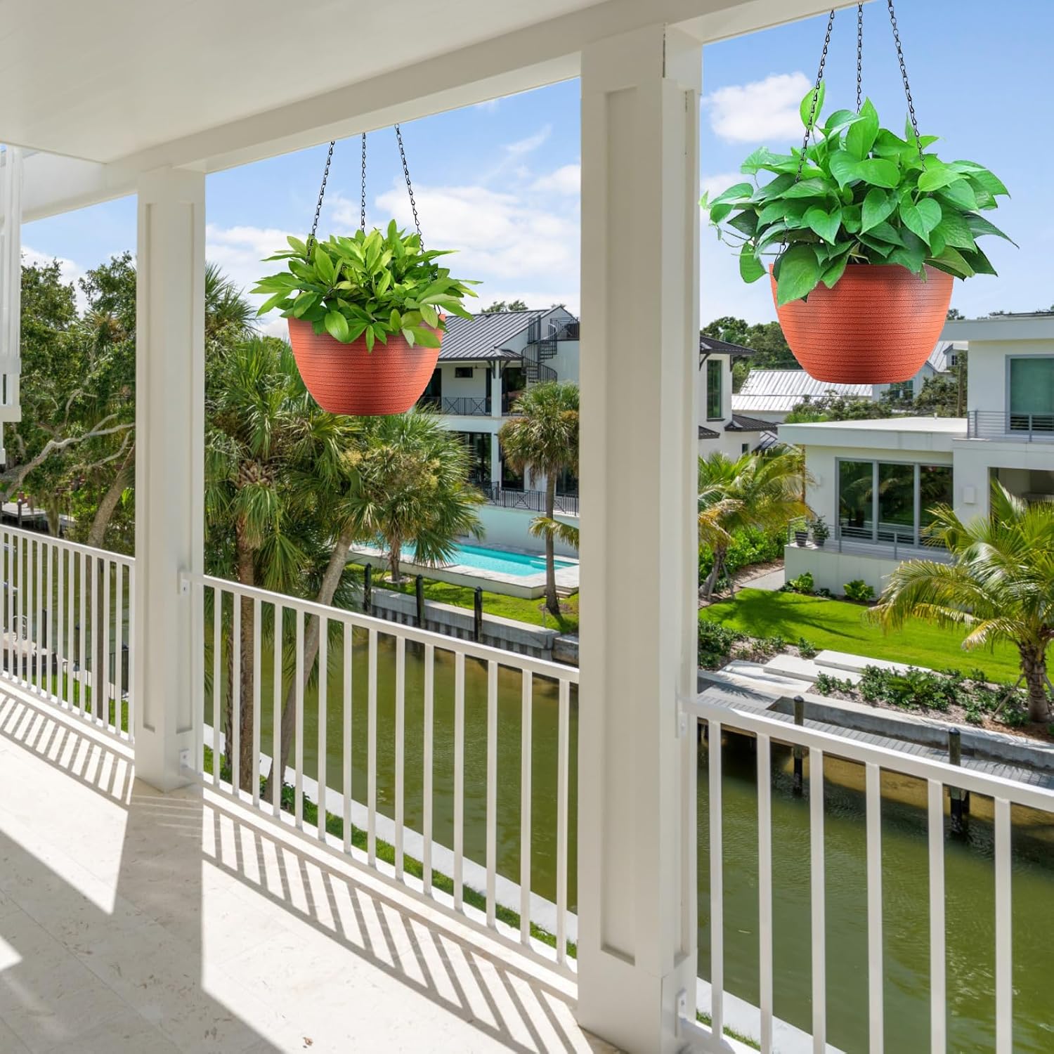 Hanging Planters for Indoor Outdoor Plants, Set of 2 Self Watering Hanging Pots with Drainage Hole & Plug and 20" Chain & Hooks