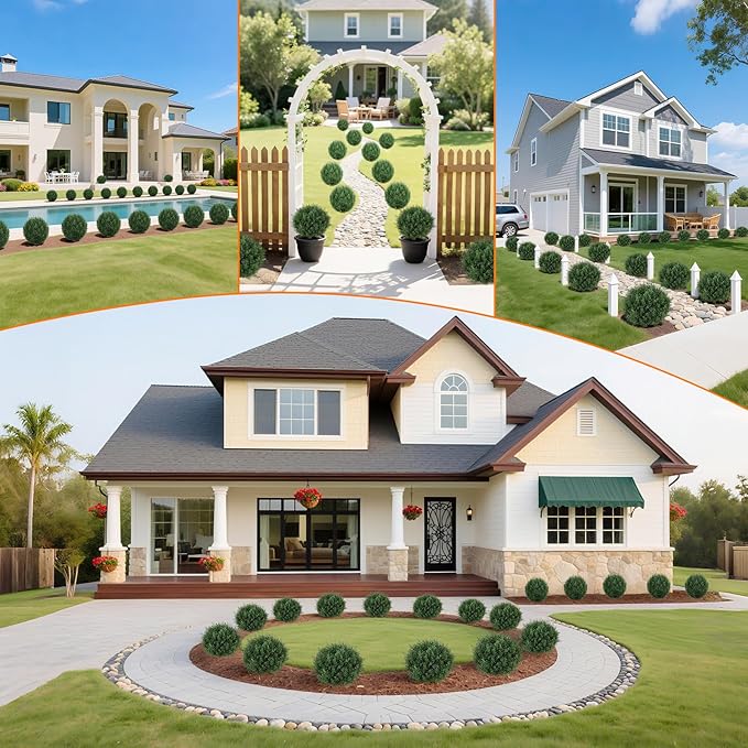 - [Hassle-Free Greenery] The artificial outdoor plants stays lush and tidy with minimal effort—unlike real trees that require constant watering, pruning, and cleaning up fallen leaves. No bugs, no wilting, and no seasonal mess. Whether you're decorating a vacation home or simply want year-round greenery without the hassle, the fake bushes offer all the beauty of nature—without the chore.