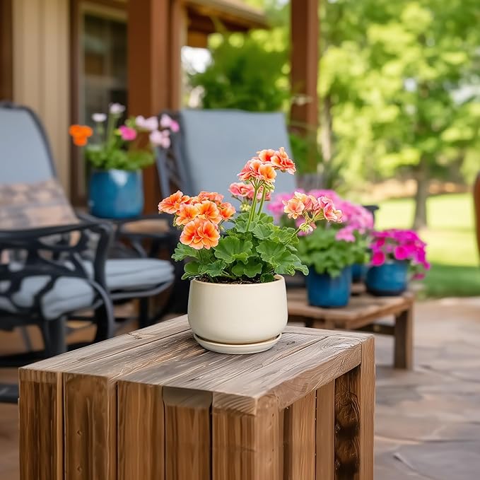G EPGardening 4 inch Plant Pots - Ceramic Planter with Drainage Hole & Saucer, Small Plant Pots for Indoor Outdoor, Round Succulent Pot, Modern Decorative Flower Pot, Desk Decor, Garden Gifts, Beige