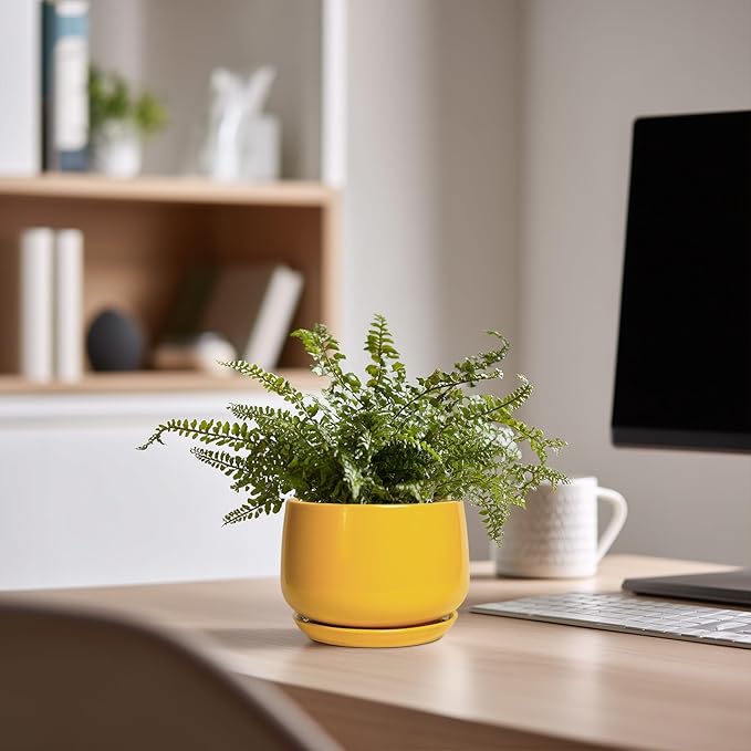 - Modern Ceramic Planter: These 4 inch plant pots with sleek curved designadd and beautiful glazed effect, highlights to your indoor or outdoor space decoration, suitable for various styles of home decor, room decor, living room decor, bathroom decor, office decor, desk decor, garden decor, patio decor