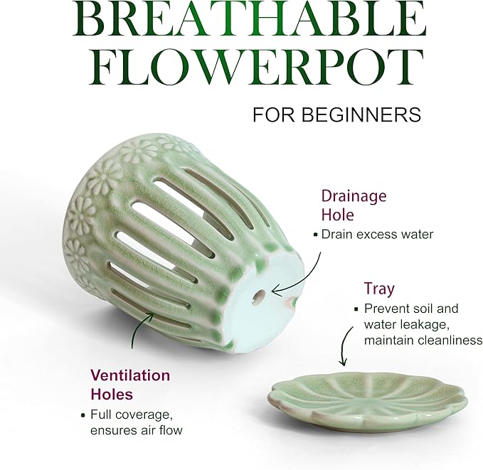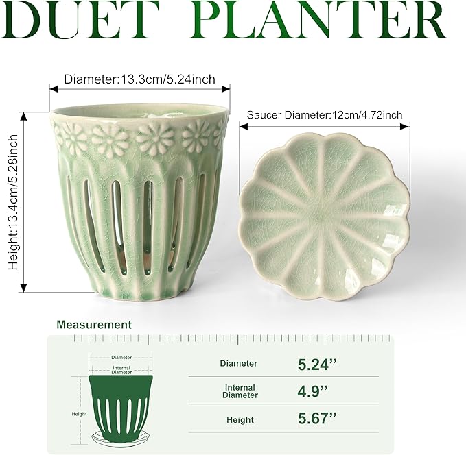 5" Ceramic Orchid Pot with Saucer: Ceramic Orchid Planter for Repotting - Plant Flower Pots for Orchid Indoor Outdoor - Orchid Pots with Holes - Orchid Container with Drainage Holes and Tray