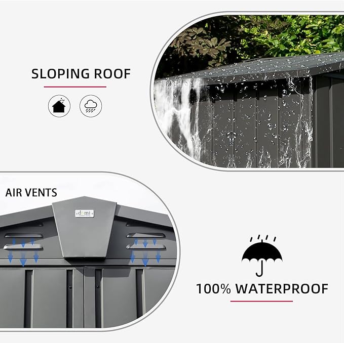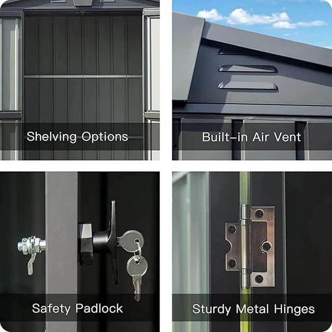 - ๐ ๏ธ High-quality Material - The outdoor metal shed uses thicker galvanized steel and a durable framework to ensure safe and all-weather use. Overlapped wall panels offer waterproof and moisture-resistant properties, perfect for all weather conditions.