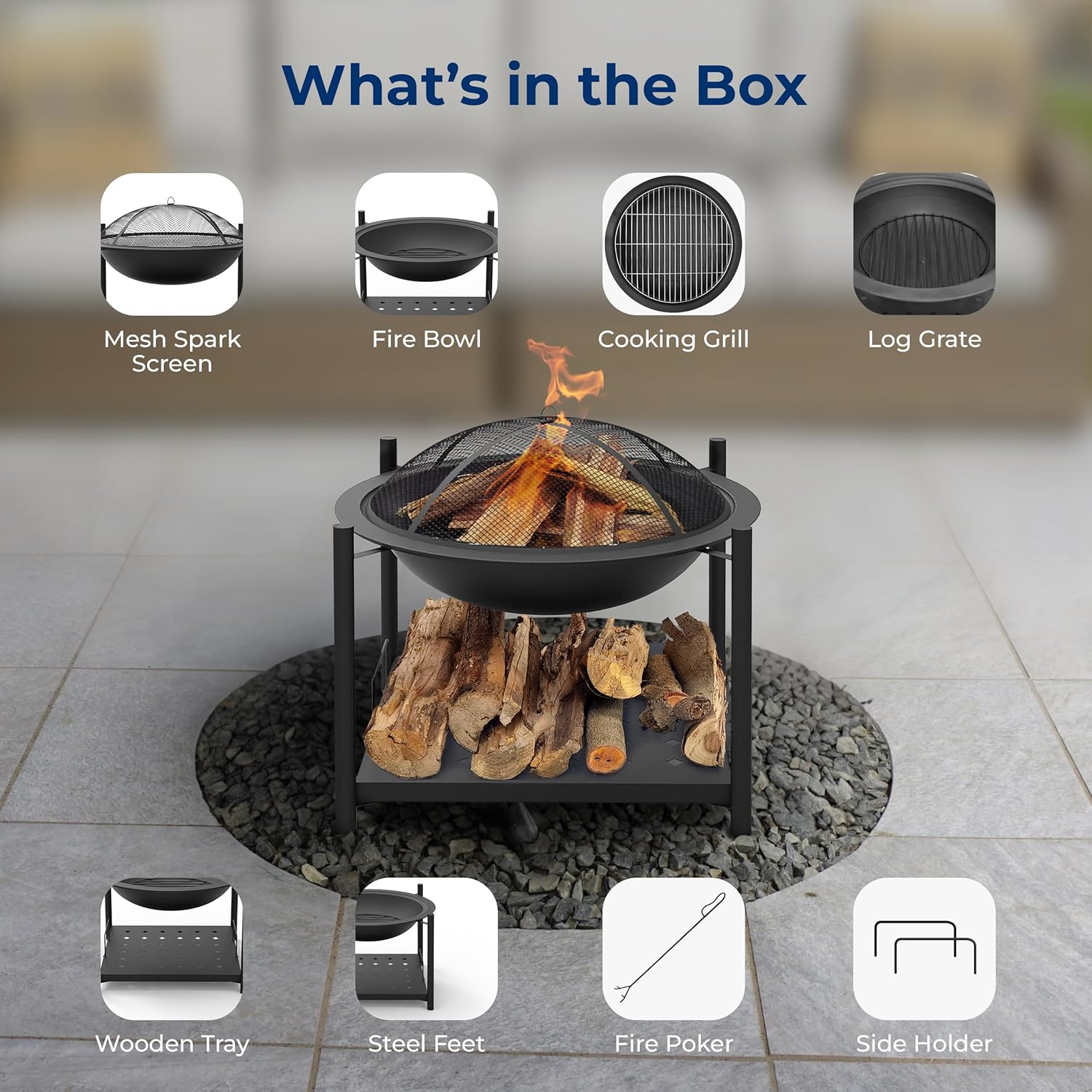 - SAFE AND RELIABLE DESIGN: The outdoor fire pit includes a mesh spark screen to protect against flying embers, ensuring safety. A fire poker is also included, making it easier to manage the fire. It’s a secure and worry-free way to enjoy your bonfire.