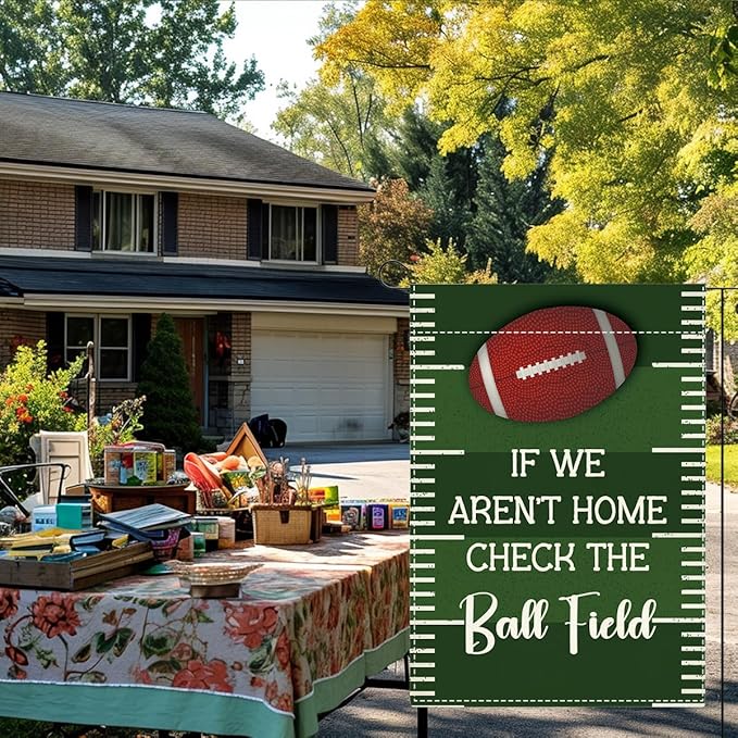 Funny Garden Flag Baseball Sports Mom Gifts for Baseball Lovers If We Aren'T Home Check The Ball Field Small Double Sided Burlap art Stained Glass Style Garden Flags 12 x 18 Inch for Outside
