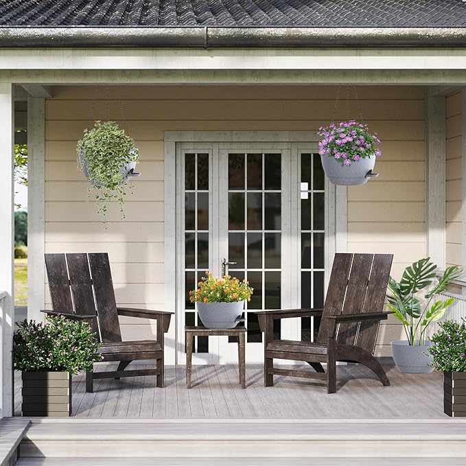 - 【Package Content】12 Inch Self-Watering Plastic Flower Pots x 2,Chain rack x 2,these Planters are easy to install and suitable for Hanging in various locations such as Balconies, Windows and Gardens