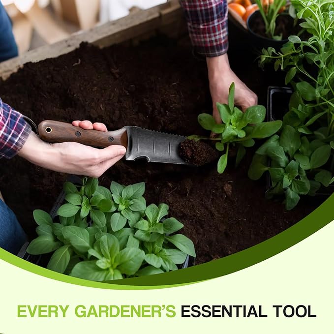 - MULTIFUNCTION BLADE GARDEN KNIFEโ: This garden knife is equipped with a sharp straight edge and a serrated edge. The straight edge is ideal for daily cutting, while the serrated edge can easily handle tough roots and stems. The blade is marked with inch measurements, enabling precise control of planting depth. The cord-cutting edge can also double as a bottle opener. With its walnut wood handle and practical blade, it is a reliable tool for both outdoor activities and gardening work