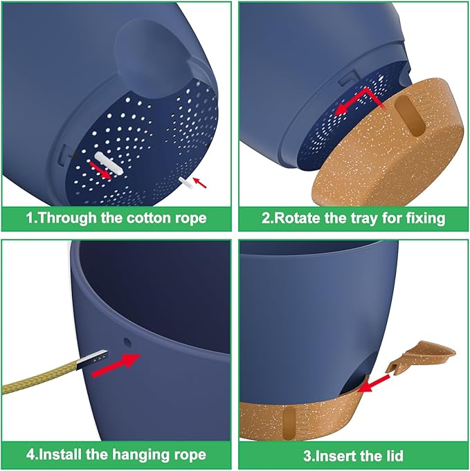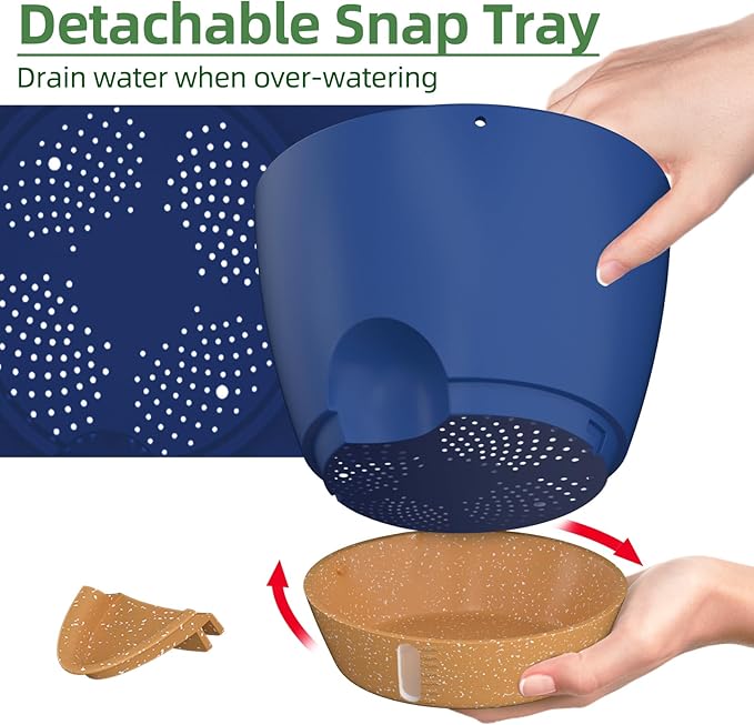 ZMTECH 10 Inch Hanging Planters for Indoor Outdoor Plants, 2 Pack Self Watering Hanging Plant Pots with Drainage Holes and Removable Saucer, Plastic Flower Hanging Pots with Watering Lip (Blue)