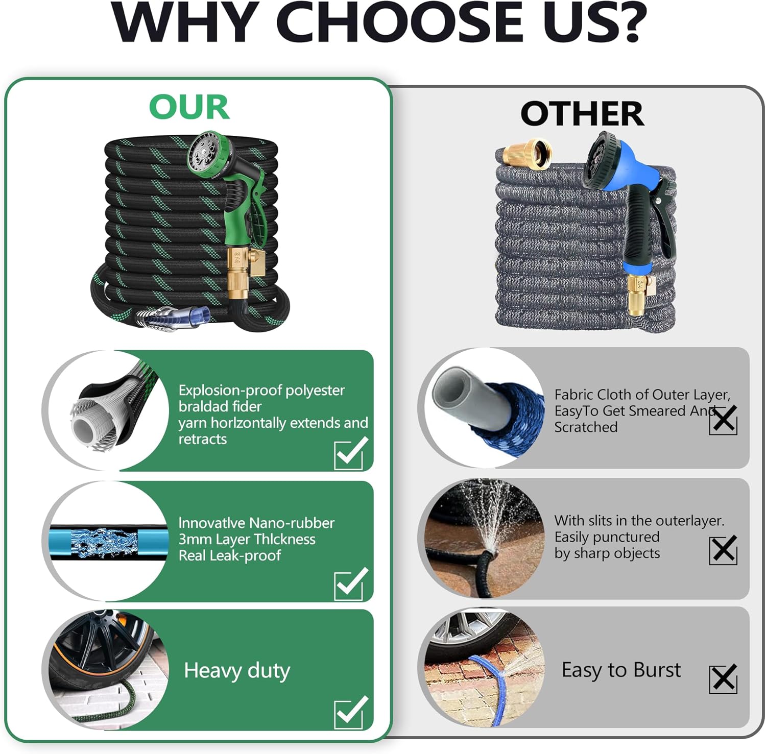 - 2025 UPGRADED GARDEN HOSE: This 75 ft Garden Hose is made from the highest quality materials, extremely functional, lightweight and flexible, durable. The hose will never kink, twist, leak, burst or get tangled up while in use