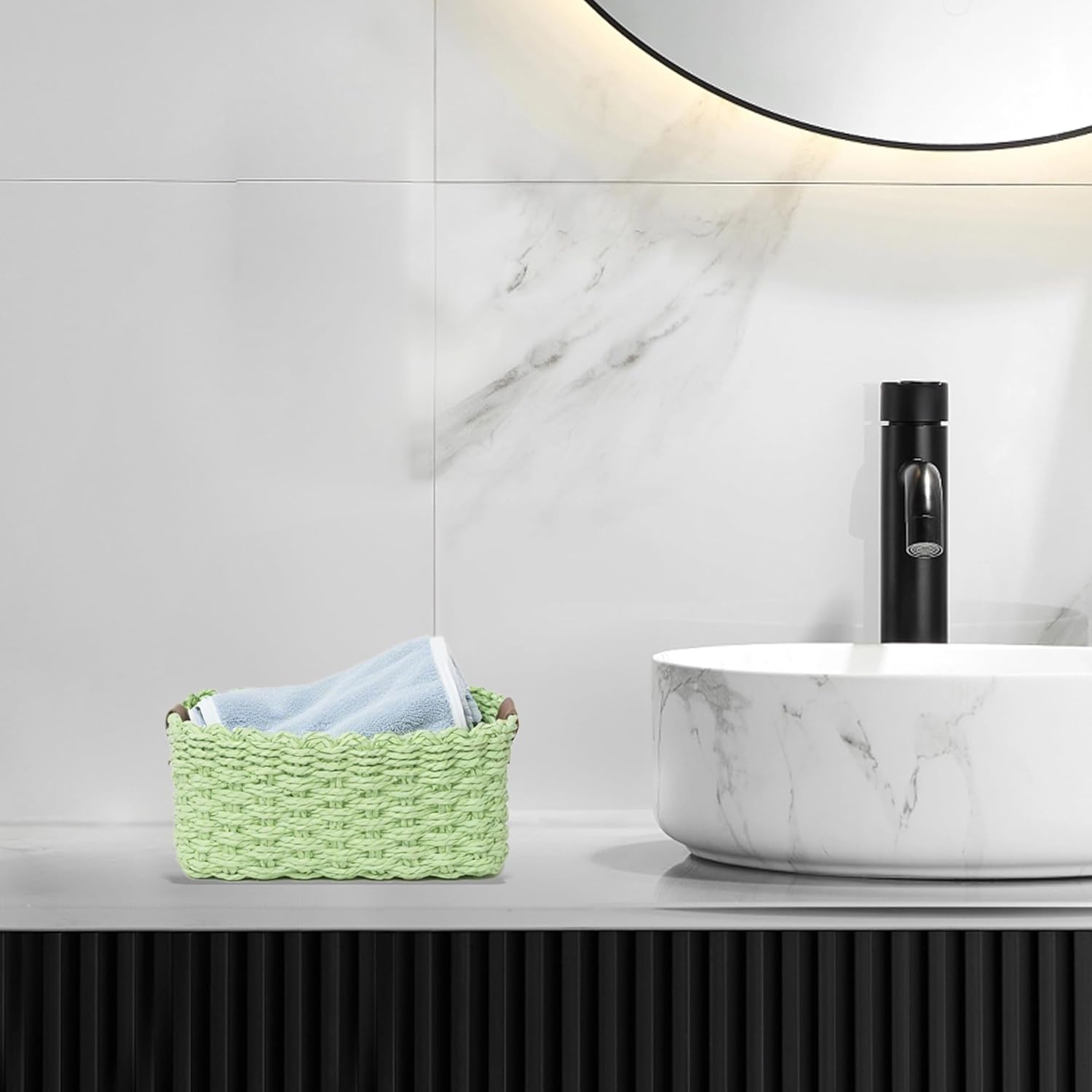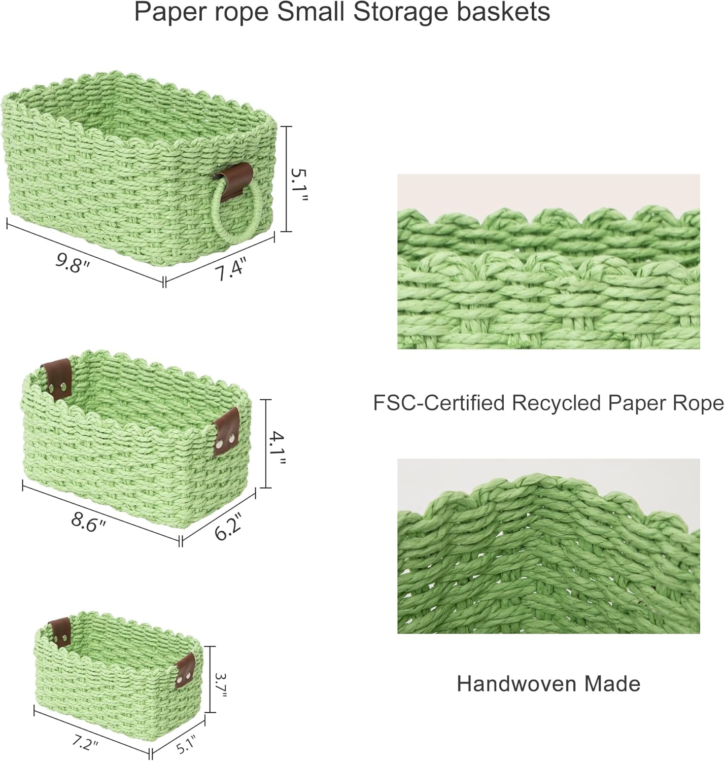 Small baskets for Organizing,Cute woven Storage basket with recycled paper rope for Shelves Bathroom,Little decorative basket,Set of 3 (Light Green)