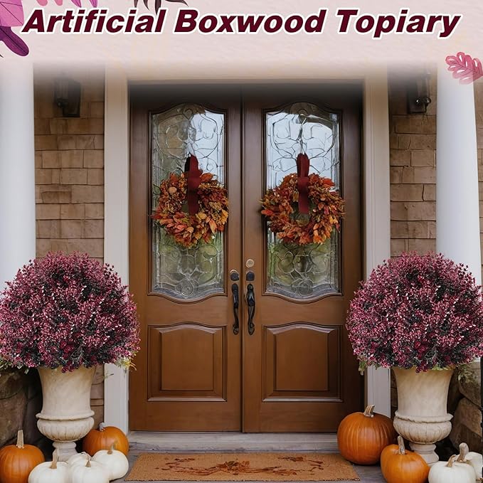- Wide Use: the artificial boxwood plants outdoor pushed in the ground are ideal for enhancing a variety of settings; Whether the front porch, balcony, backyard, pergola, garden, patio or hedge, faux boxwood balls with realistic leaves would bring you a feeling of relaxation; It's ideal for indoor and outdoor garden decorations, also ideal for friends and relatives as housewarming gifts