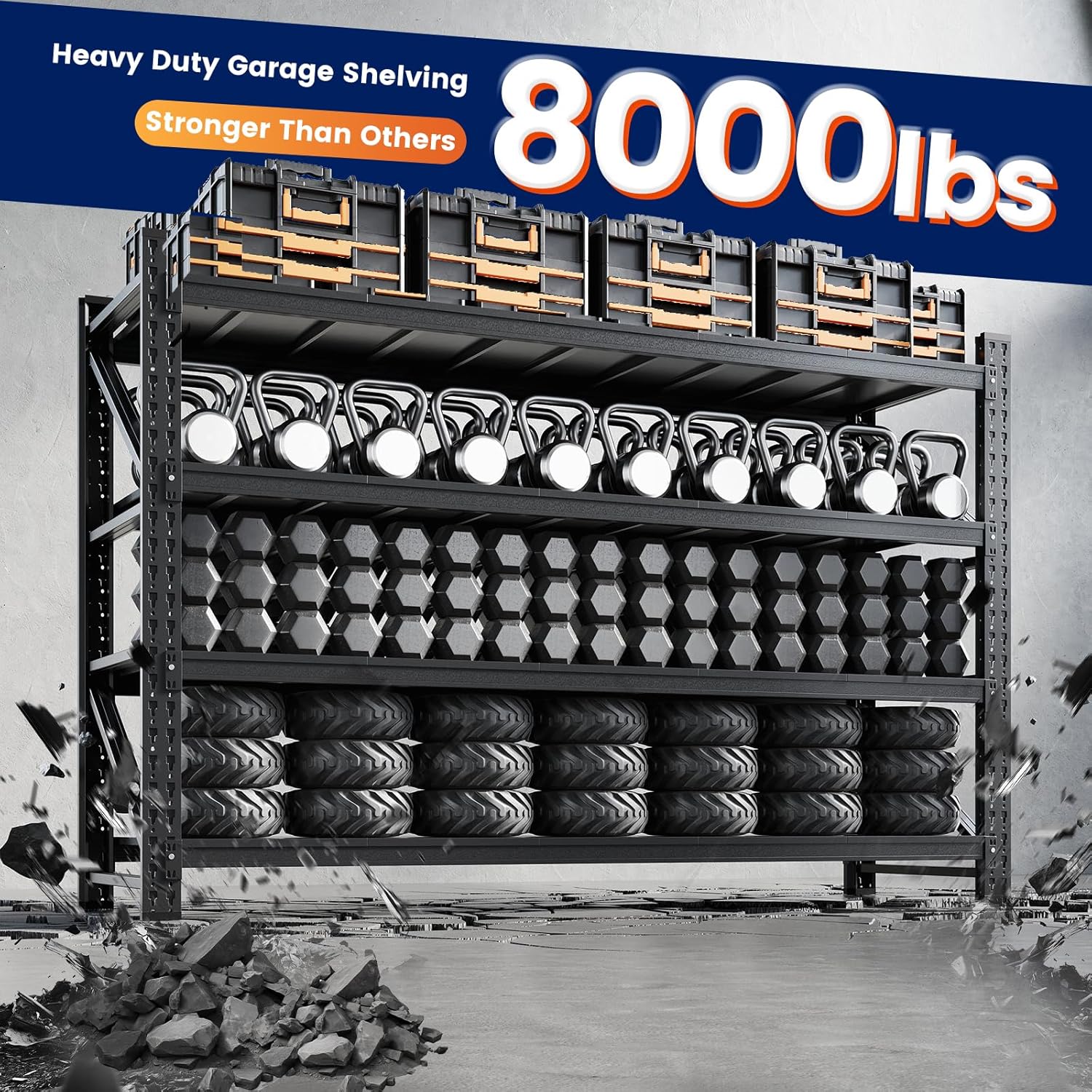 - 【Adjustable 4-Tier Shelving】Our garage storage shelves are as flexible as your plans.This heavy duty shelving height of each layer could adjustable by moving the crossbar up or down,to meet the different heights of varied objects needed and customize your own space!