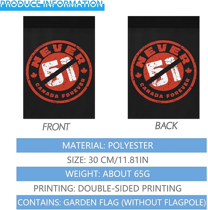 Never 51st State Canada Flag Vintage Garden Flag for Outside 12x18 Double Sided Funny House Flag for Outdoor
