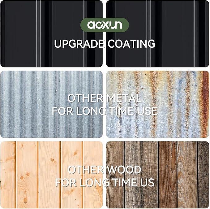 - Heavy-Duty Construction for All-Weather Durability: Built to last, this storage shed features a galvanized steel frame with a powder-coated finish, offering superior rust resistance and UV protection. The rigidly engineered panels withstand heavy loads and adverse weather, while the integrated top vents promote airflow, reducing condensation. The sloped roof design enhances water runoff, and the stainless steel latch lock secures your belongings from theft and pests.