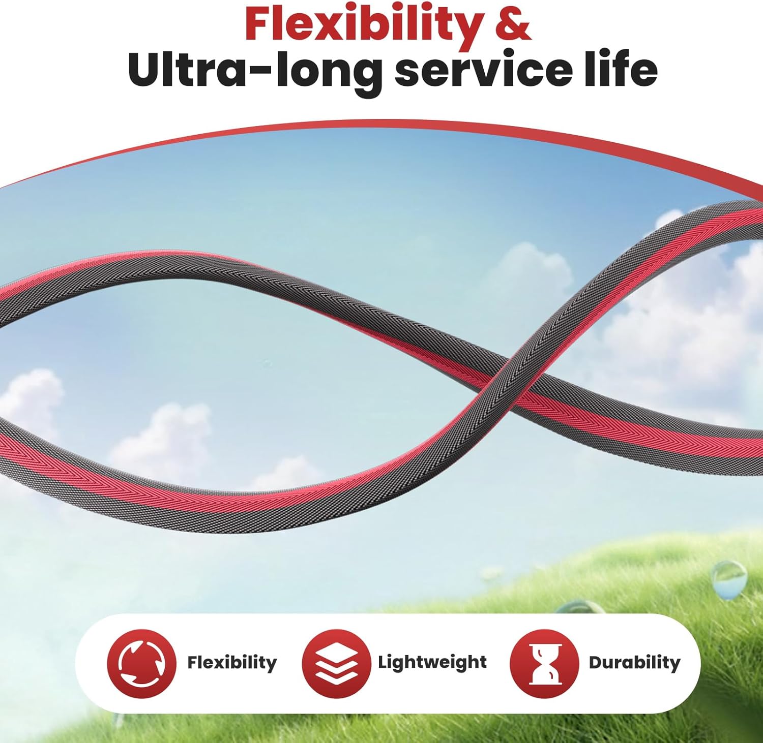 - ๐ Ultra-Durable 8-Layer Latex Core โ Reinforced with high-density polyester mesh and 2X latex layers, this non-expanding garden hose resists leaks, cracks, and bursts under 150-450 PSI, lasting 3X longer than standard hoses.