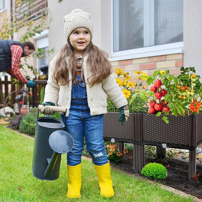 - 🌻【Durable Outdoor Growth Box】Our elevated planter boxes are made of reinforced PP material with a rattan pattern that is lightweight, high load bearing and reusable.