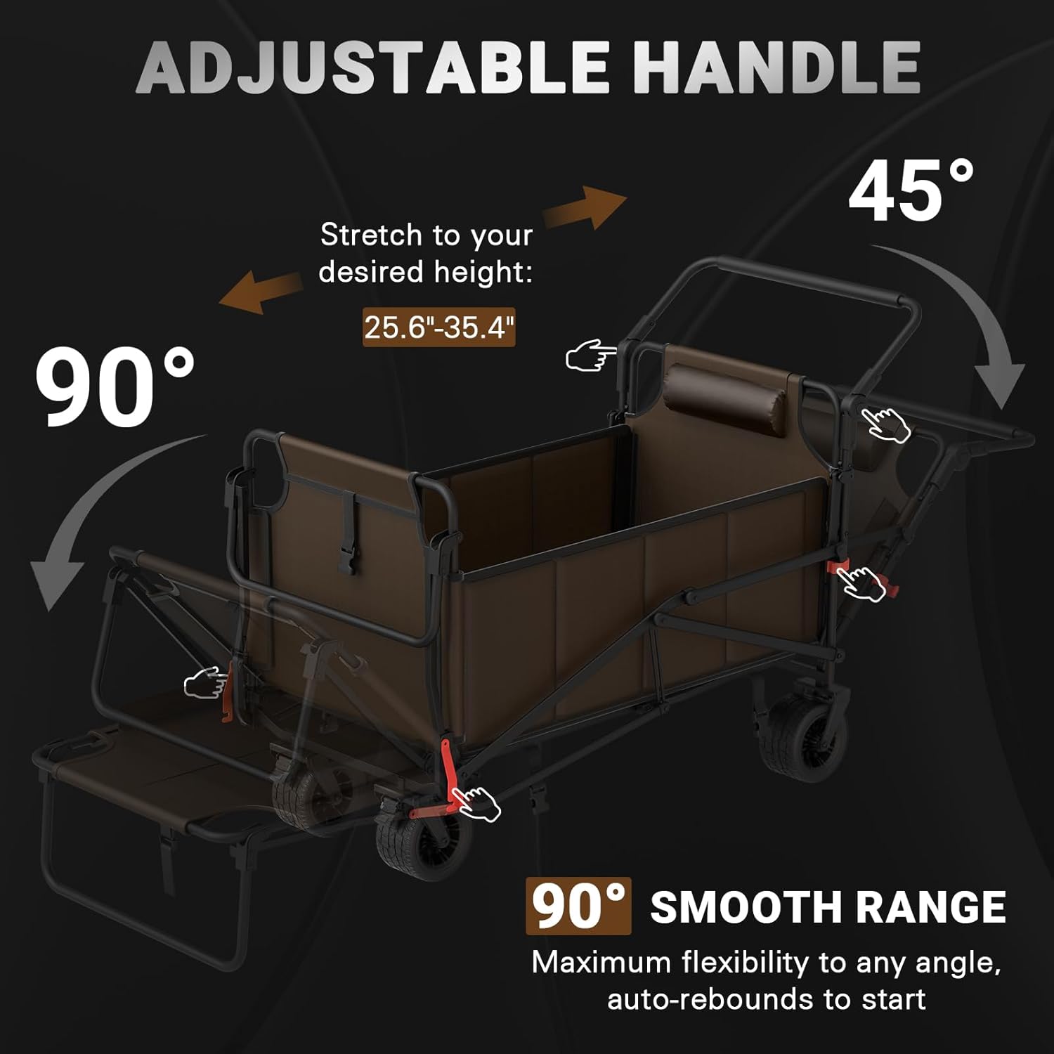 LEVELEVE Heavy Duty Folding Wagon - 2-in-1 Collapsible Cart, 650lb Capacity, All-Terrain Wheels w/Brakes & Side Pockets (Brown)