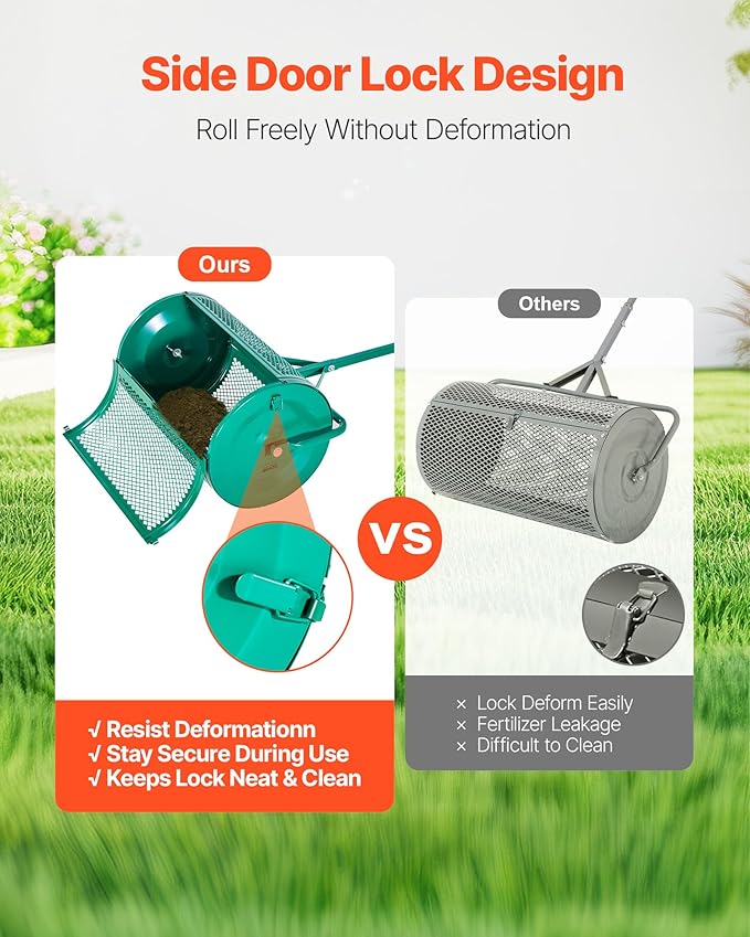 - Large Capacity Roller: This 24-inch peat moss roller holds up to 2.66 cu.ft of material, reducing the need for frequent refills. Fill it once with grass seed, fertilizer, or soil amendments to complete large jobs faster and with less effort