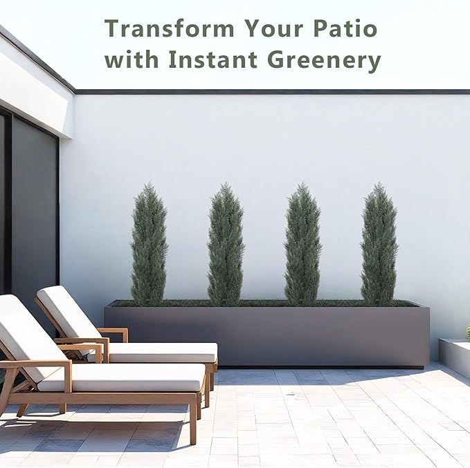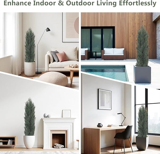 - 【Tall & Realistic Look – 5ft Natural Greenery】Standing 5 feet tall from the bottom of the pot to the tip of the tallest leaf, this artificial cedar tree features dense, lifelike greenery that mimics a real evergreen shape. Please note: The tree is shipped compressed. To reach its full height and natural look, gently fluff the branches upward by hand after assembly