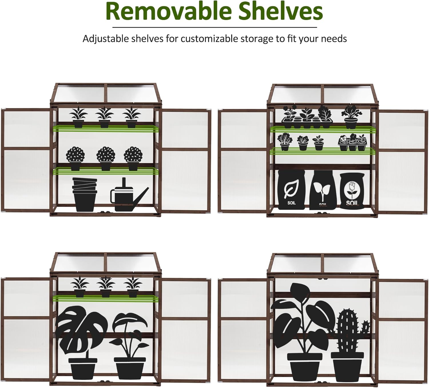 - 2 Adjustable Shelf: The shelves of this garden cold frame could be freely adjusted height to fit various types of plants, which meets all your needs