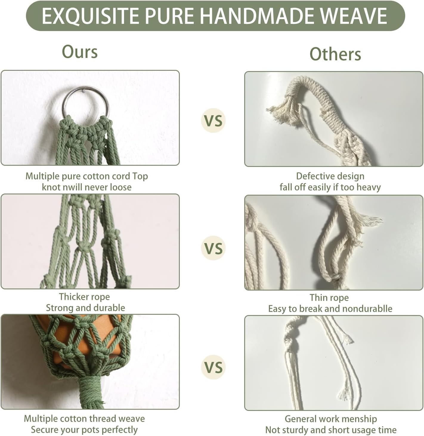 - HANDMADE WEAVING CRAFT - Hanging plant holders made from eco-friendly recycled cotton rope and metal ring, It has a strong flexible woven design, sturdy and durable, accommodates planters of all shapes and sizes, you can take them home for your plants with confidence