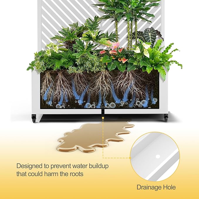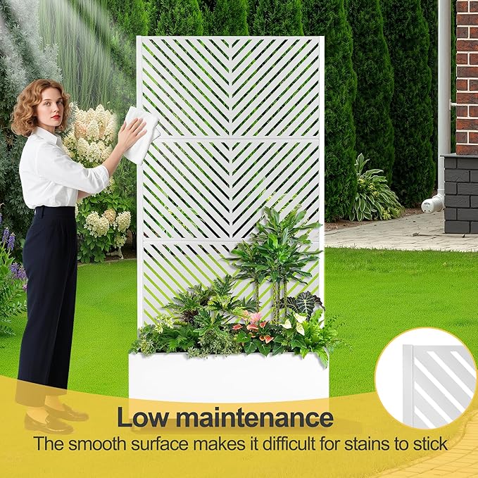 - Suitable for Various Environments This planter with trellis is ideal for gardens, balconies, patios, and greenhouses, perfect for growing flowers, fruits, vegetables, and herbs. It also serves as an privacy planters for patio, creating a tranquil space. Ideal for beautifying your area or enhancing privacy.
