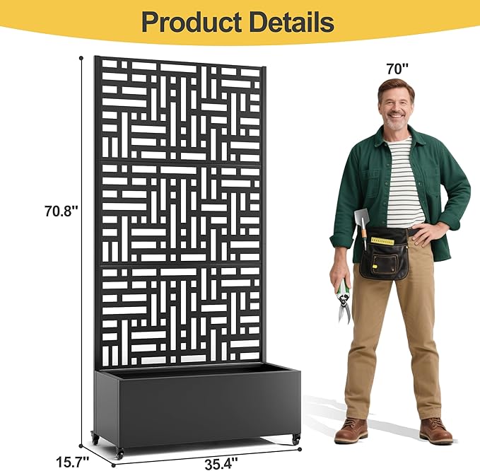 - Suitable for Various Environments This planter with trellis is ideal for gardens, balconies, patios, and greenhouses, perfect for growing flowers, fruits, vegetables, and herbs. It also serves as an privacy planters for patio, creating a tranquil space. Ideal for beautifying your area or enhancing privacy.